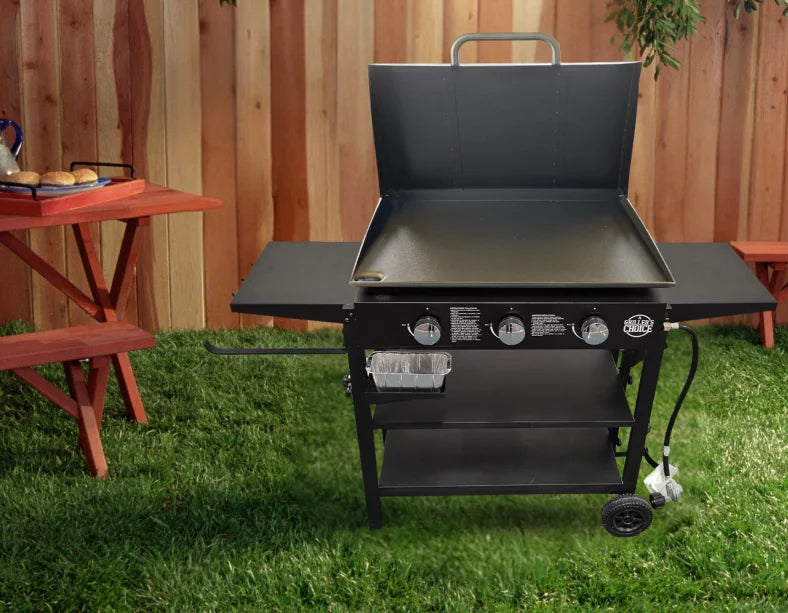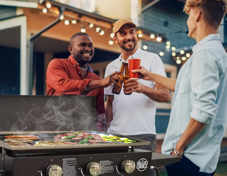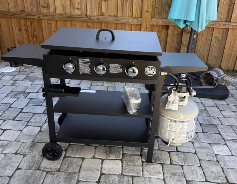 The Ultimate Outdoor Gas Griddle by Griller’s Choice makes every backyard gathering unforgettable. With 450 square inches of cooking space and 36,000 BTUs of power from three burners, it’s perfect for everything from breakfast pancakes to steak dinners.